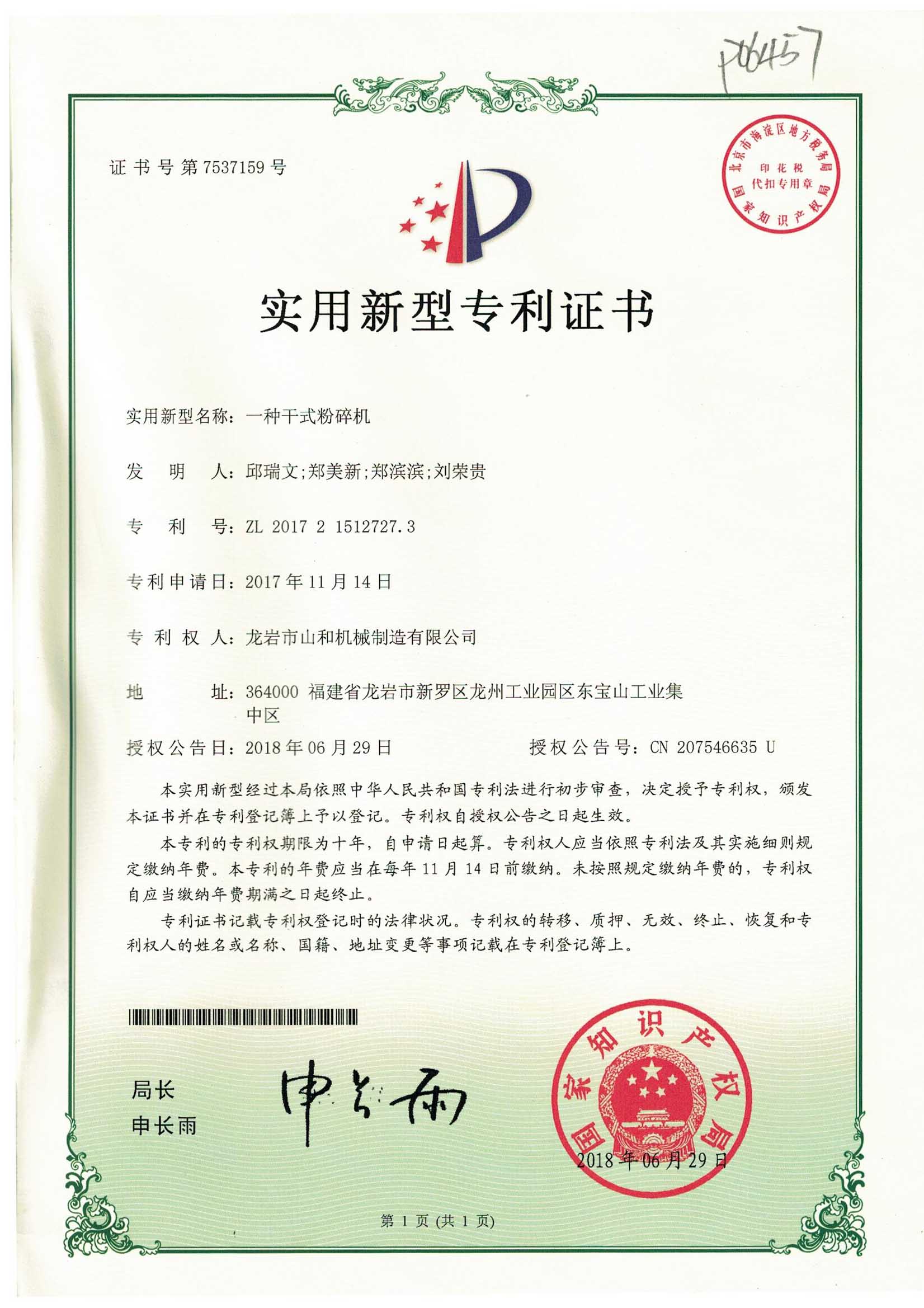 山和(hé)機械榮(róng)獲“市知(zhi)識産權(quan)優勢企(qǐ)業”榮譽(yù)稱号